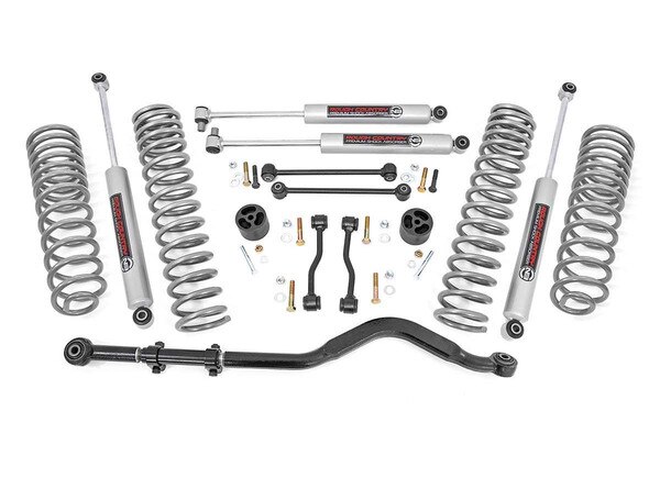 Give your Gladiator aggressive good looks while providing enough ground clearance to run up to 37in tires with Rough Country's 3.5in Suspension Lift Kit. This easy-to-install kit offers a total transformation giving your Gladiator a more commanding presence while retaining a smooth factory-like ride. Rough Country's 3.5in Suspension Lift features a set of durable front and rear coil springs allowing you to retain your for a smooth ride that's perfectly dialed in to your jeep's new ride height! For an impressive ride quality both on and off-road this kit also includes Rough Country's nitrogen-charged N3 shocks. These 10-stage variable valving shocks feature a durable 18mm spring loaded piston rod huge 54mm shock body and reinforced seals for a long lifespan of smooth performance. Rough Country's Jeep Gladiator 3.5in kit features a 100% bolt-on installation process for an easy no-fuss assembly and includes a Lifetime Replacement Warranty for the ultimate peace of mind. Easy bolt-on installation; Increased ground clearance; Clears up to 37" tires